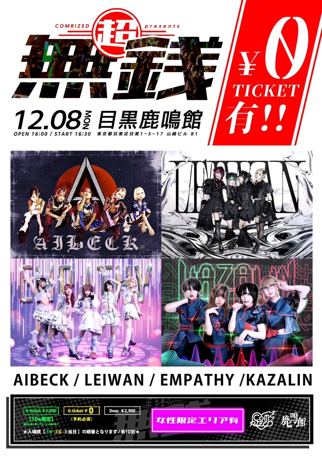 前売:¥8,000- (税込)※入場整理番号付き ※入場時ドリンク代別途必要